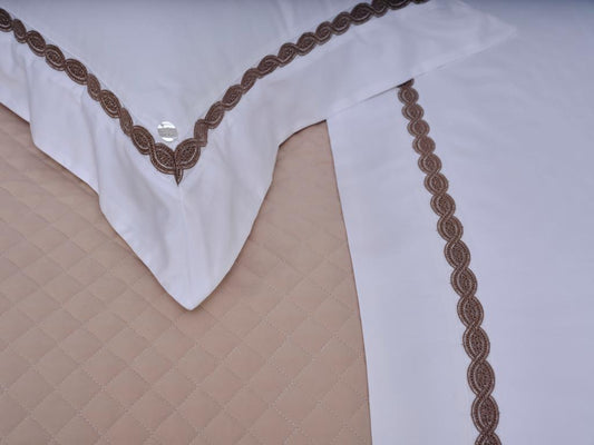 Almofada Darling Bordada Bco/Camurça 4 Abas 600 Fios