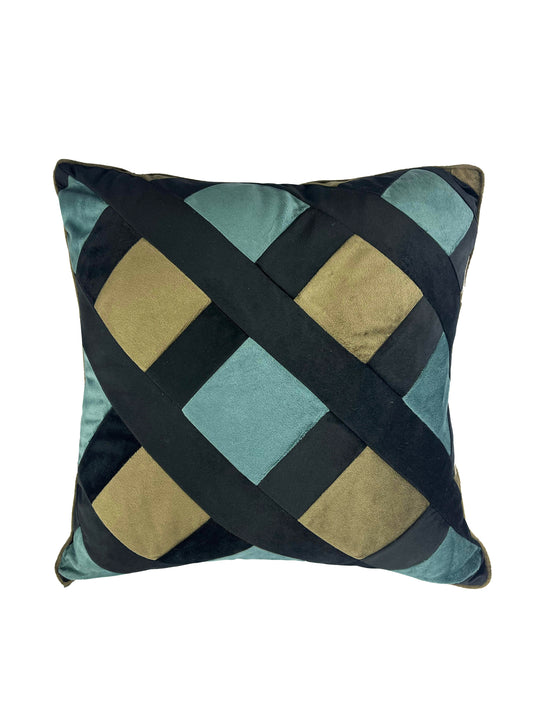 Almofada Boteh Recortes Veludo Azul Persa/Preto/Marrom Camurça 50x50