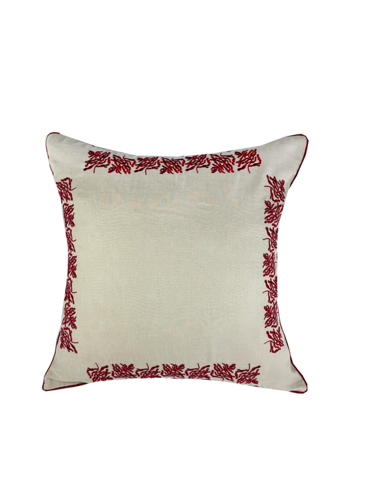 Almofada Bruma Coralina Linho Bege Bordada Corais Bege 50x50