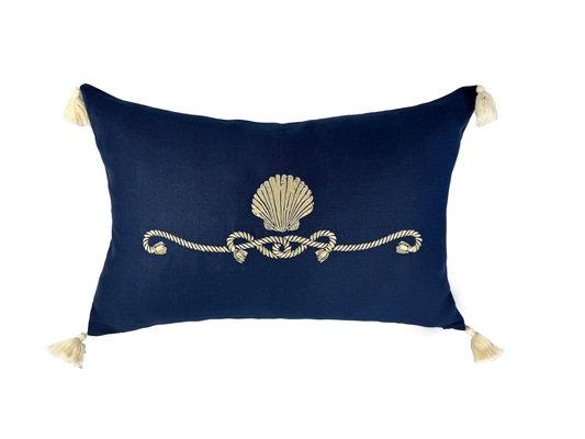 Almofada Canto Das Conchas Linho Marinho Bordada Com Tassels 40x60