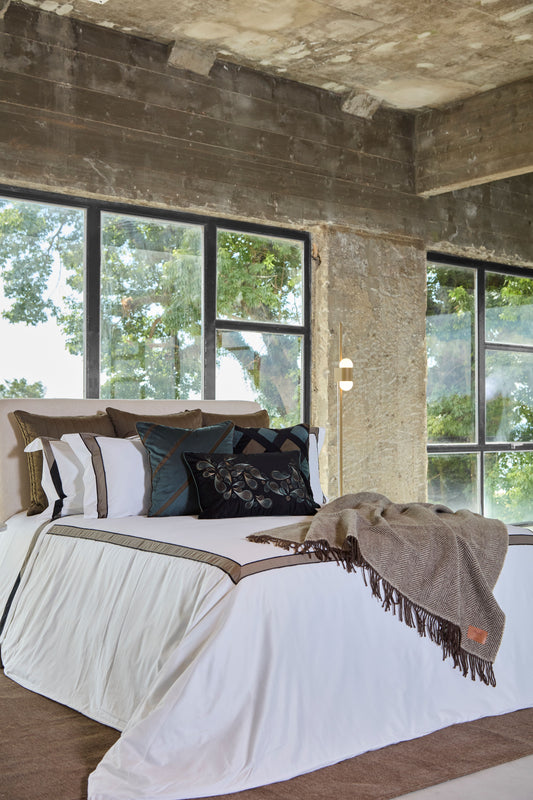 Almofada Céu do Éden Bordada 600 fios van/bco waves 50x50