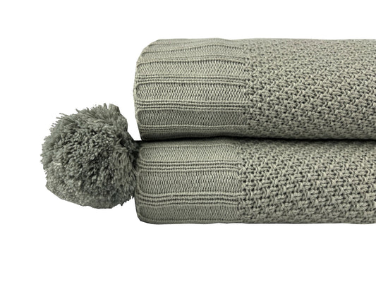 Manta Tricô Amboise Ponto Popcorn Cinza Pompons 2,20X2,50