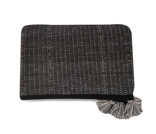 Manta Tricô Araucária Jacquard Preto/Basal/Bco Pompons 2,20X2,50