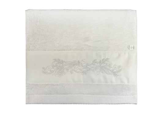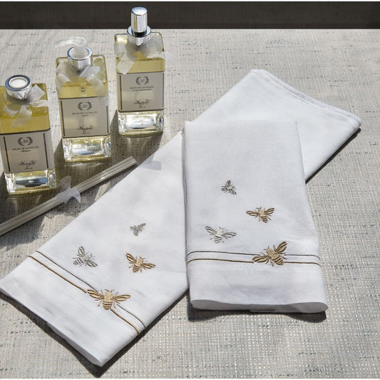 Toalha De Visita Abeille Linho Branco Bordado 37x54