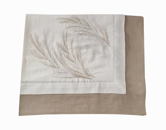 Toalha De Mesa Plumeira Linho Branco Barra Duna Bordada