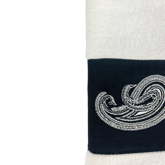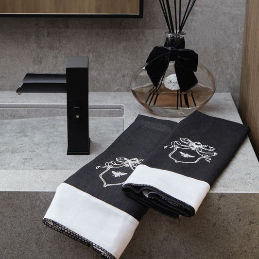 Toalha De Rosto Royal Linho Preto Bordado Brasão 50X70