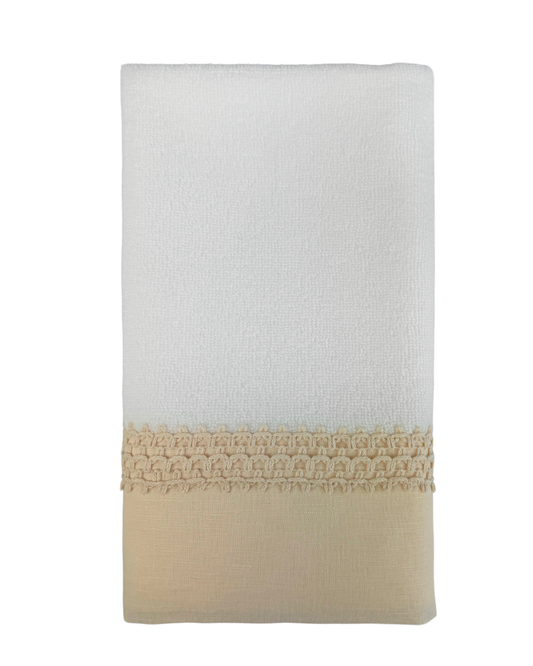 Toalha De Lavabo Pied De Poule Bordada Bege