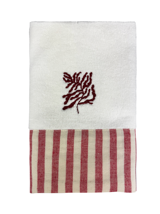 Toalha de lavabo Bruma Coralina Barrado Linho Listrado Bordado