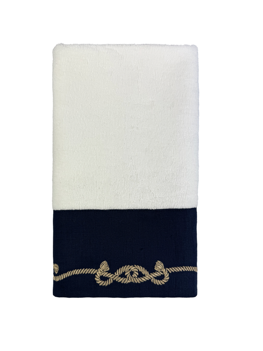 Toalha De Lavabo Canto Das Conchas Barrado Linho Marinho Bordado