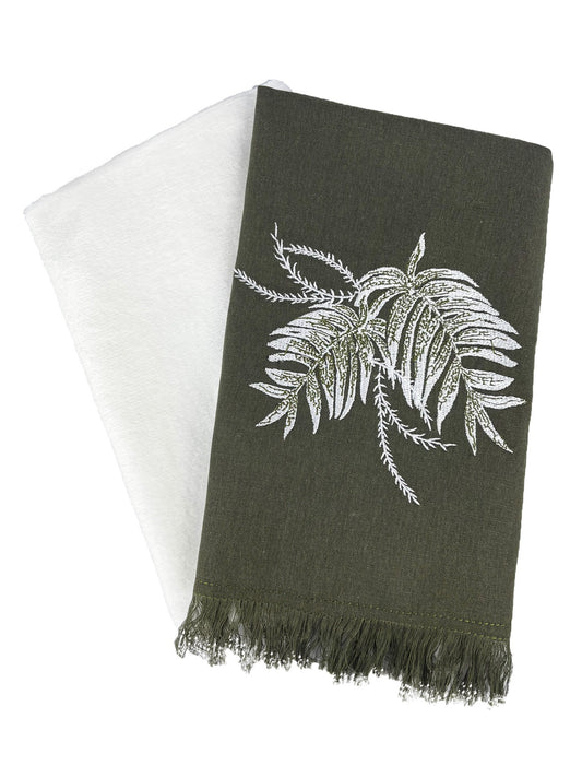 Toalha Visita Jardim do Amanhã atoalhado/linho pistache bordada 2 peças 37x54
