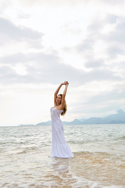 Vestido Bruma Coralina Longo Linho Branco Babado Tamanho Ùnico