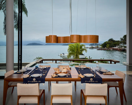 Trilho De Mesa Canto Das Conchas Linho Marinho Bordado 0,50x1,50