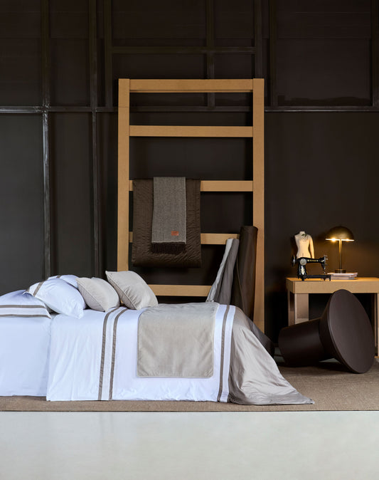 Capa para Duvet Cotelê Branco/Camurça Bordada 600 Fios
