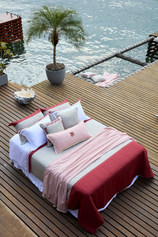 Capa para Duvet Bruma Coralina Linho Bege/Bordô