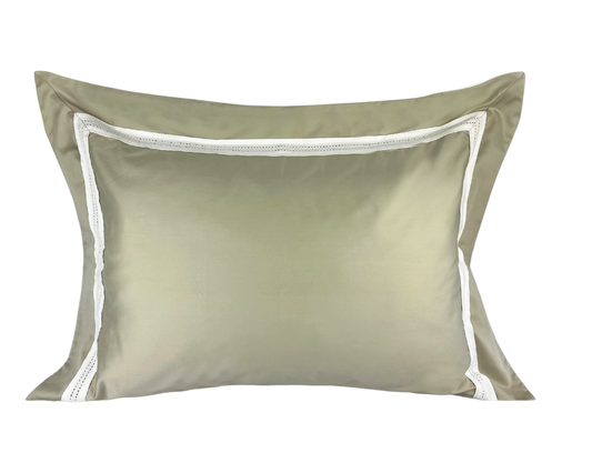 Fronha Avulsa Deauville 3 Abas Branco e Verde Guipuir 600 Fios