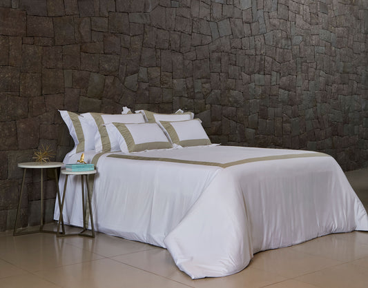 Fronha Avulsa Cotelê Branco/Camurça Bordada 600 Fios