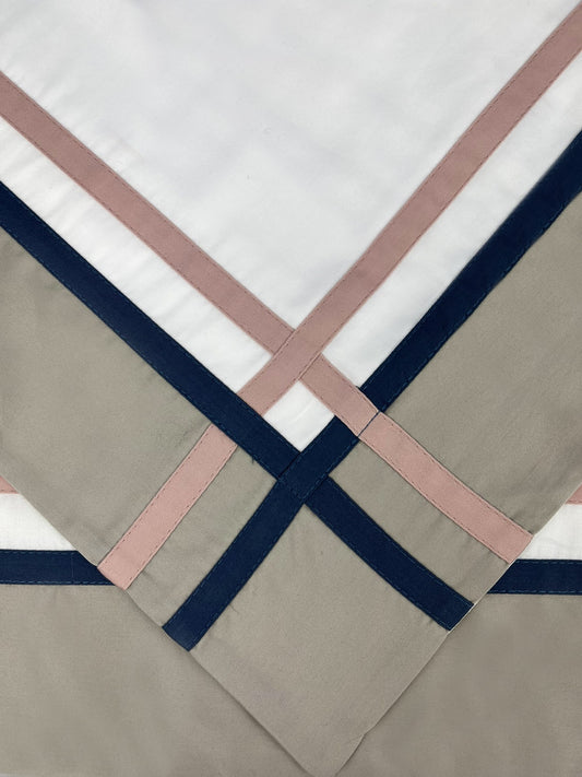 Jogo De Lençol Canto Das Conchas Bege Detalhes Em Marinho 600 Fios