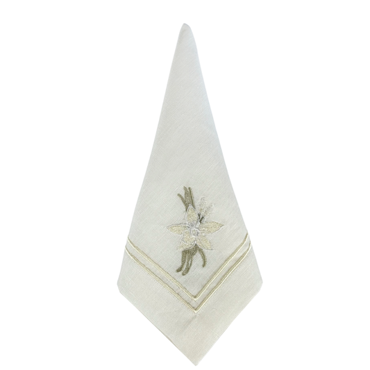 Guardanapo Sweet Vanilla Em Linho Branco Bordado