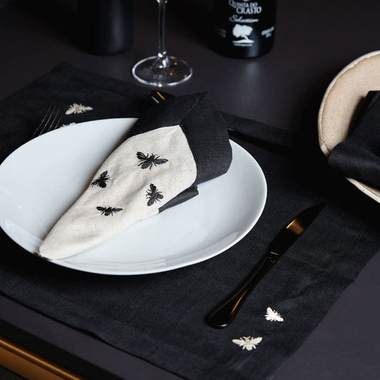 Guardanapo De Boca Abeille Linho Bege/ Preto Bordado 45X45