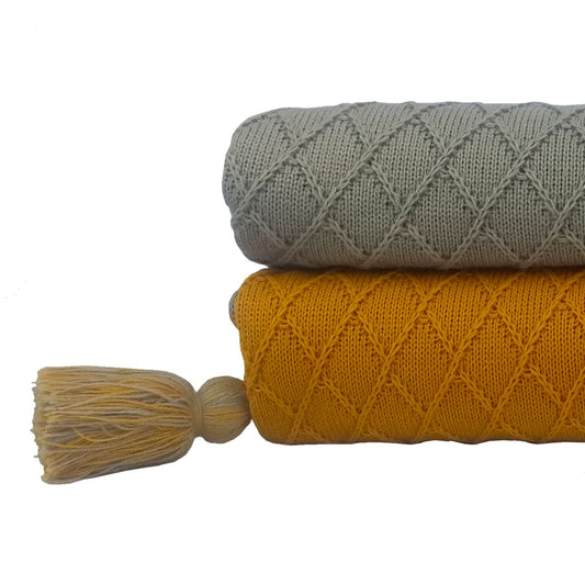 Manta Tricô Horas Douradas Bossa Nova E Cinza 1,20X1,50
