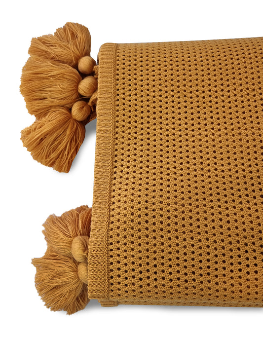 Manta Tricô Maracajá Açafrão Pompons 2,20X2,50