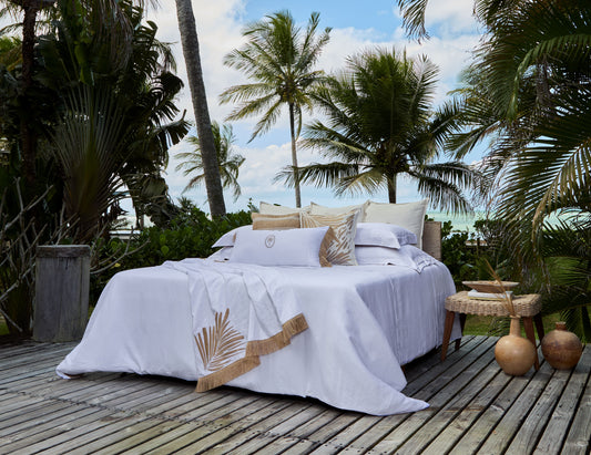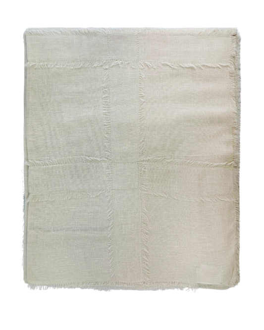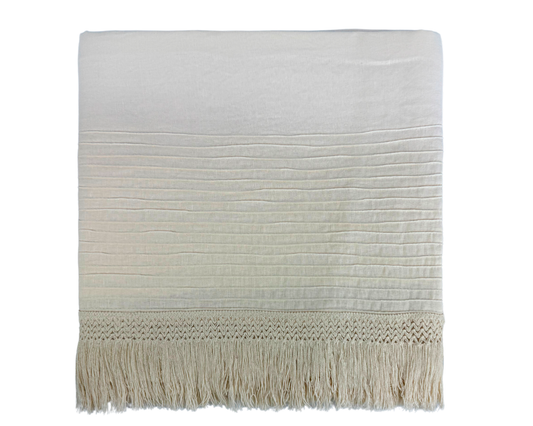 Manta Jardim de Verão linho bege com renda e franjas 1,20x2,50