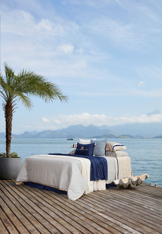 Manta Canto Das Conchas Em Linho Marinho Com Tassels 1,30x2,50