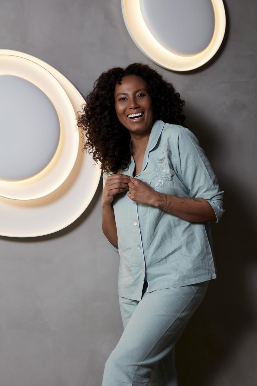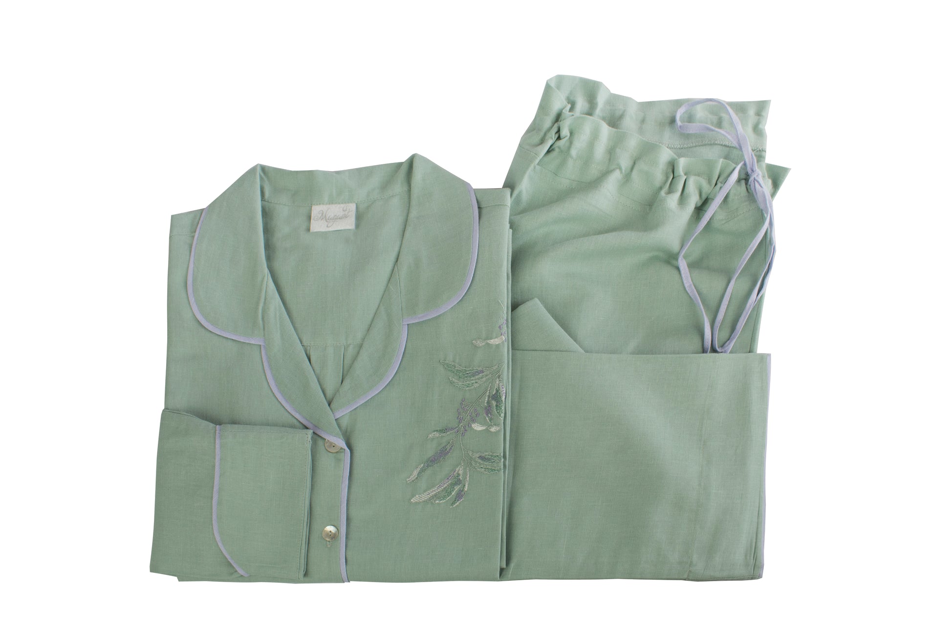 Pijama Jardim do Amanhã Linho Pistache Bordado